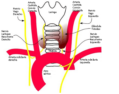 A qué nivel nace el nervio laríngeo recurrente izquierdo? a. cayado de aorta b. ap. estiloides c. art. tiroidea superior d. art. subclávia
