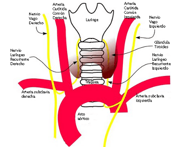 ¿A qué nivel nace el nervio laríngeo recurrente izquierdo?