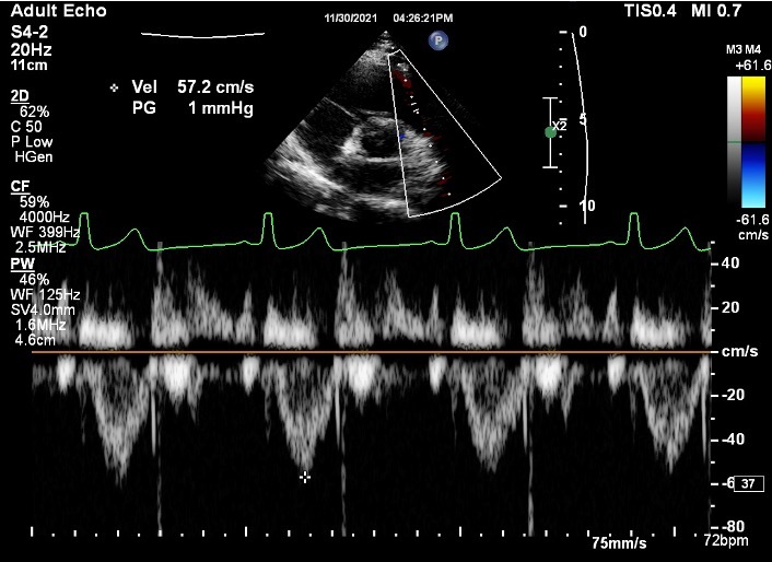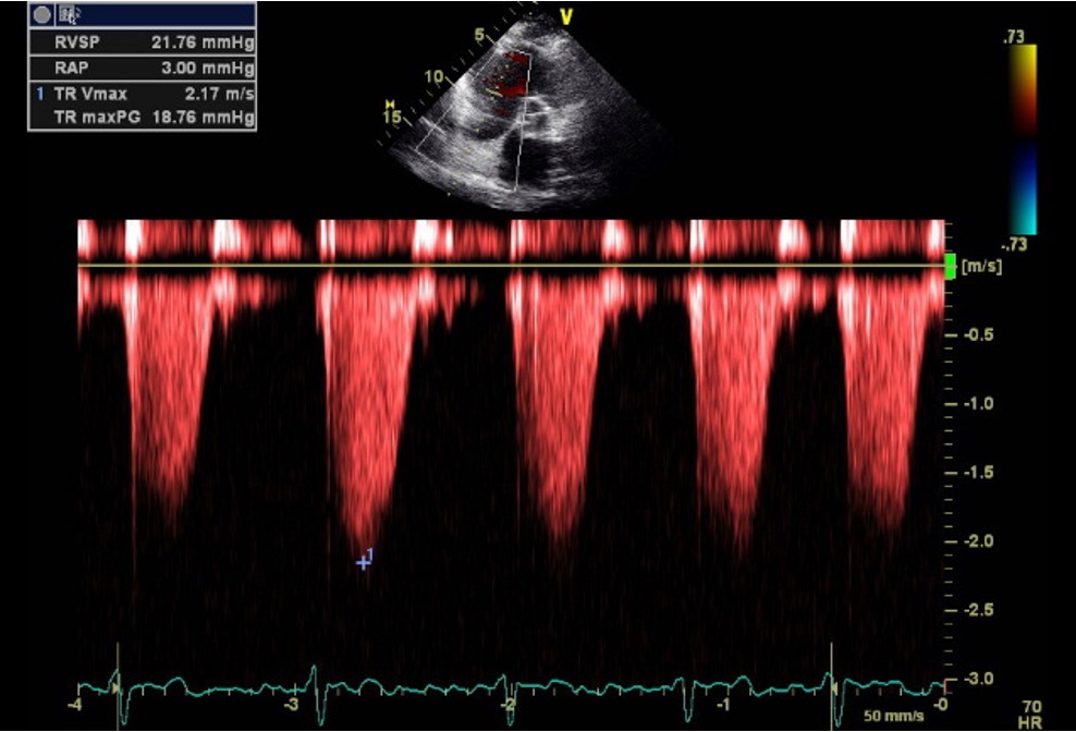 For a PSAX RVOT PW image we need to look for a PV “closing click” what should these look like?