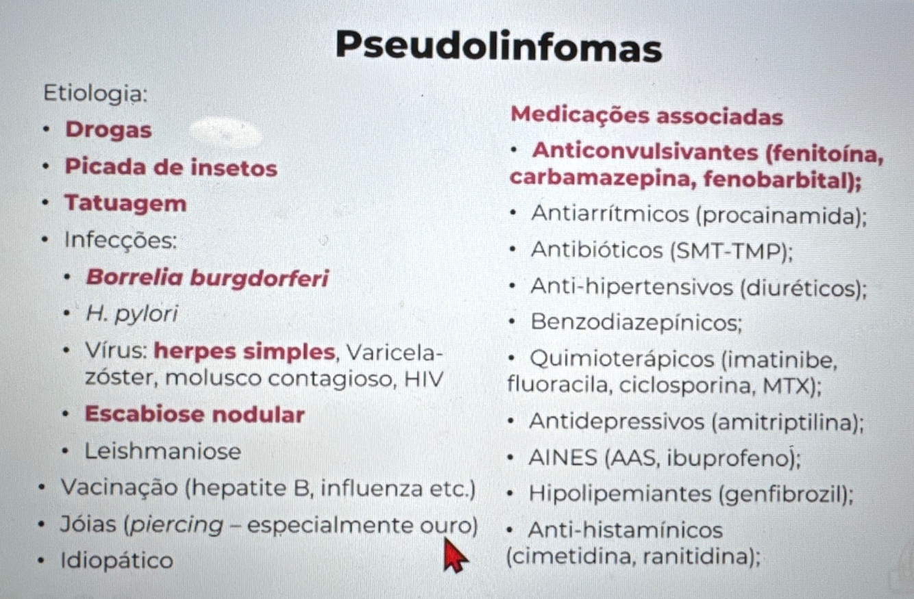 Quais possíveis causas para pseudolinfomas?