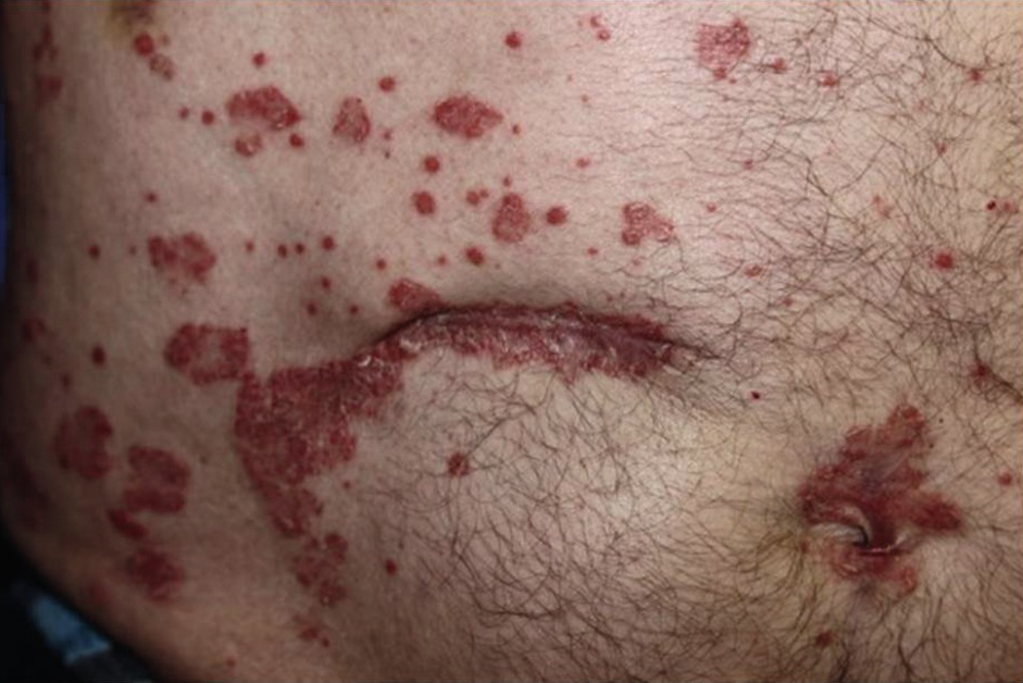 Plaques erythemato-squameuse de la région lombo sacré(bastion)