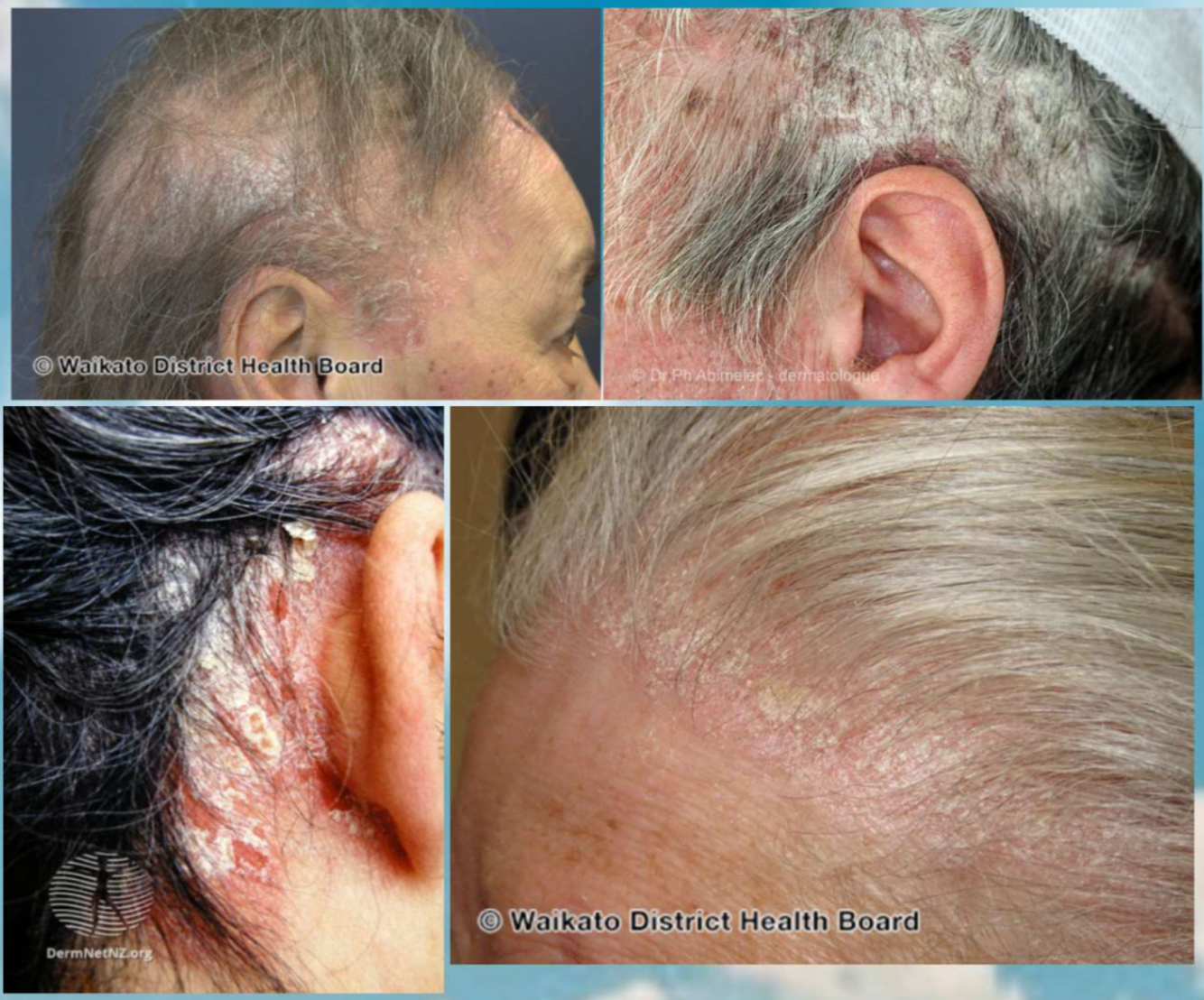 Seborrhoeic (scalp and behind ears)