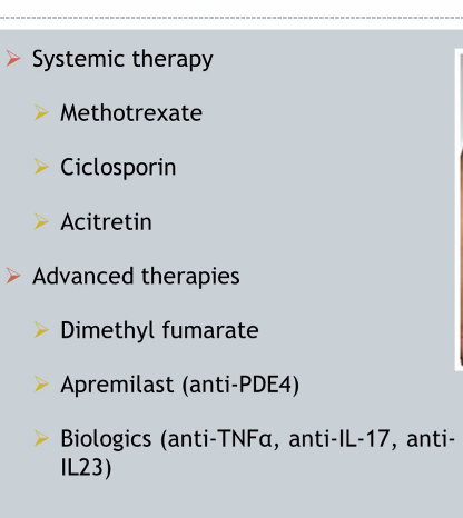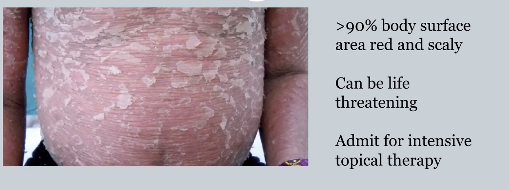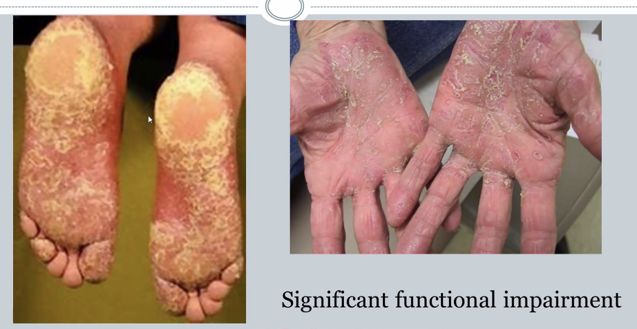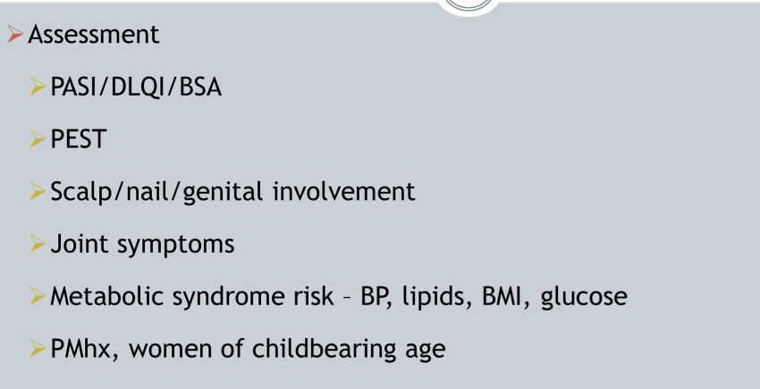 PASI involves = body surface involvement, how thick how scaly how red it is, score >10 → psoriasis