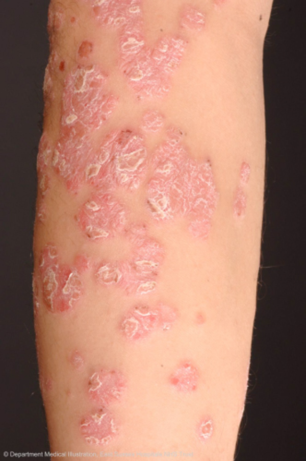 Psoriasis is a chronic inflammatory skin disease characterised by erythematous, circumscribed scaly papules, and plaques. It can cause itching, irritation, burning, and stinging.