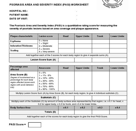 PASI (see below)- psoriasis area and severity index score, used for treatment allocation by NICE