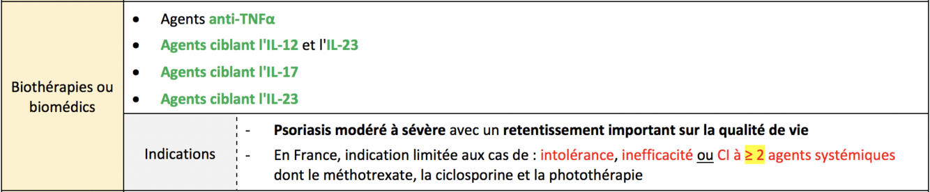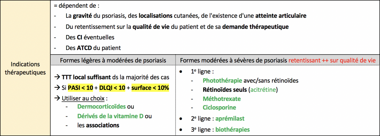 Indications thérapeutiques dans le pso