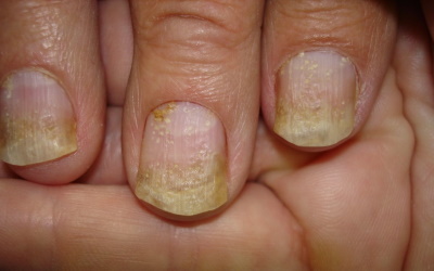 Onycholysis (nail becomes detached from underlying nail bed)