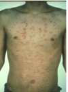 This will usually for 7-10 days after a streptococcal sore throat, causing multiple small psoriatic lesions (Raindrops) on the trunk