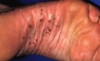 This is a very painful and possibly disabling form of psoriasis affecting the palms of the hands and soles of the feet, often causing very thick hyperkeratosis