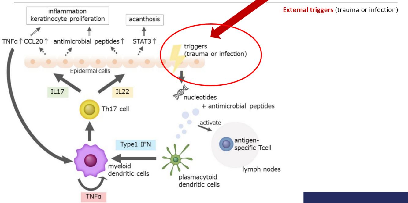 6.) IL-17 activates production of TNF α, CCL20 + antimicrobial peptides to enhance inflammatory reaction in the skin and proliferation of keratinocytes