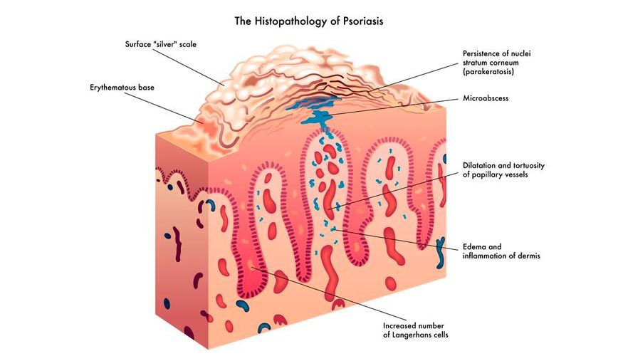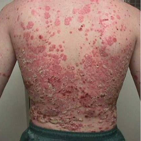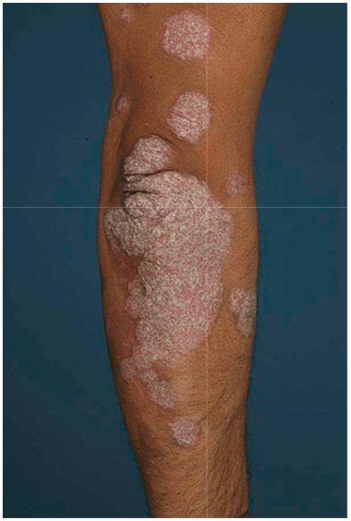 A common papulo-squamous disorder affecting 2% of the population and is characterized by well-demarcated, red scaly plaques. The skin becomes inflamed and hyperproliferates at about ten times the normal rate