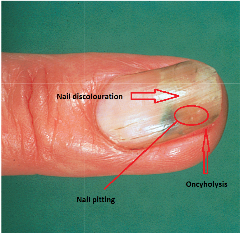 What are nail changes seen in psoriasis?