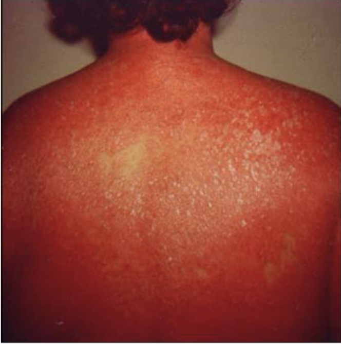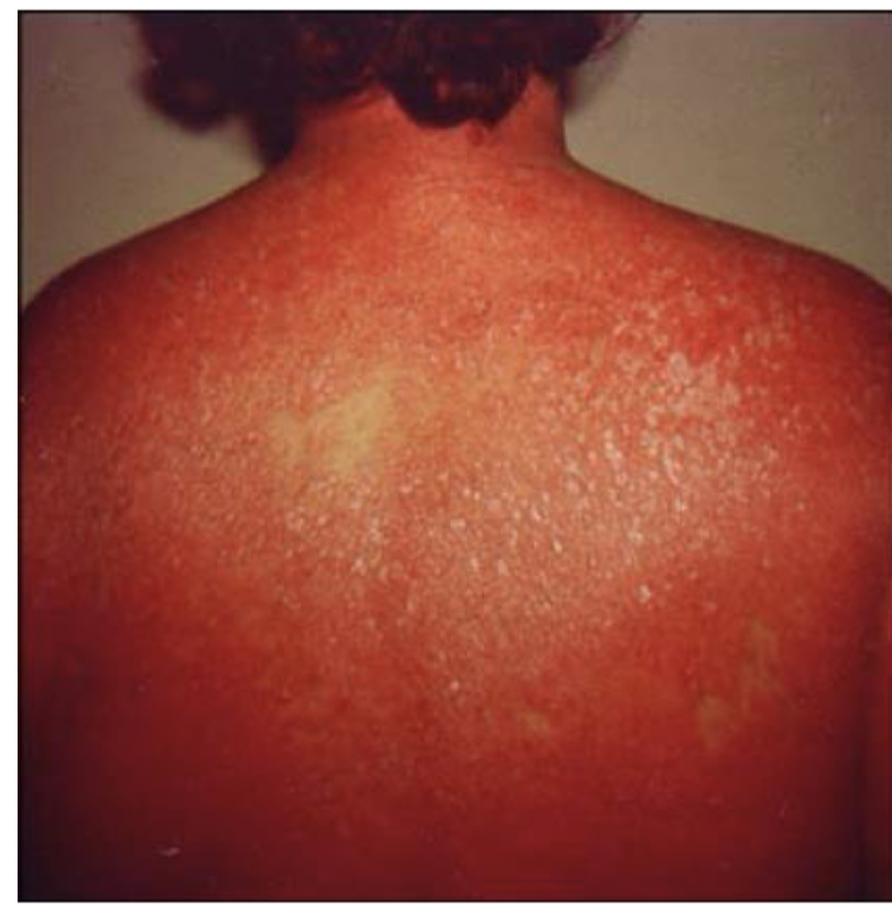 what form of psoriasis are generalized erythema covering nearly the entire body surface area with varying degrees of scaling