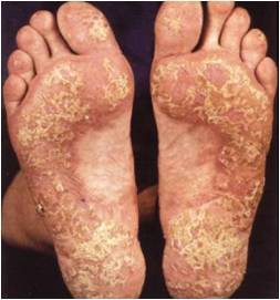 2 forms: Palmoplantar (more common)