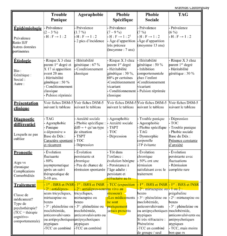 v/f les ISRS sont la première ligne de traitement pour tous les troubles anxieux