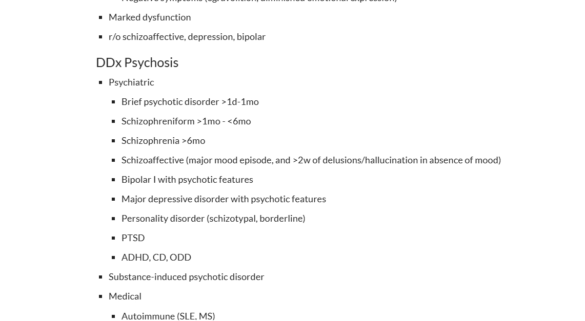 donne le dx différentiel de la schizophrénie selon la durée des sx