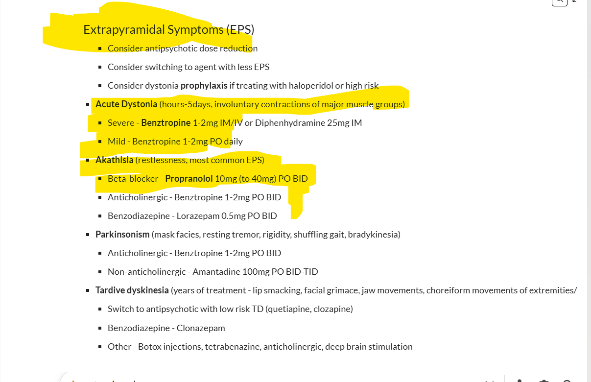 Akathisie : PROPANOLOL!!! ( mais benztropine semble aussi là )