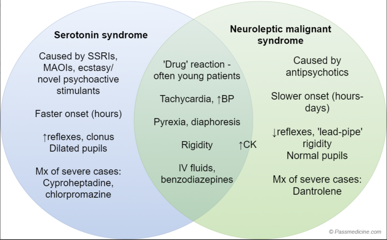 neuroleptic malignant syndrome Vs Serotonin syndrome