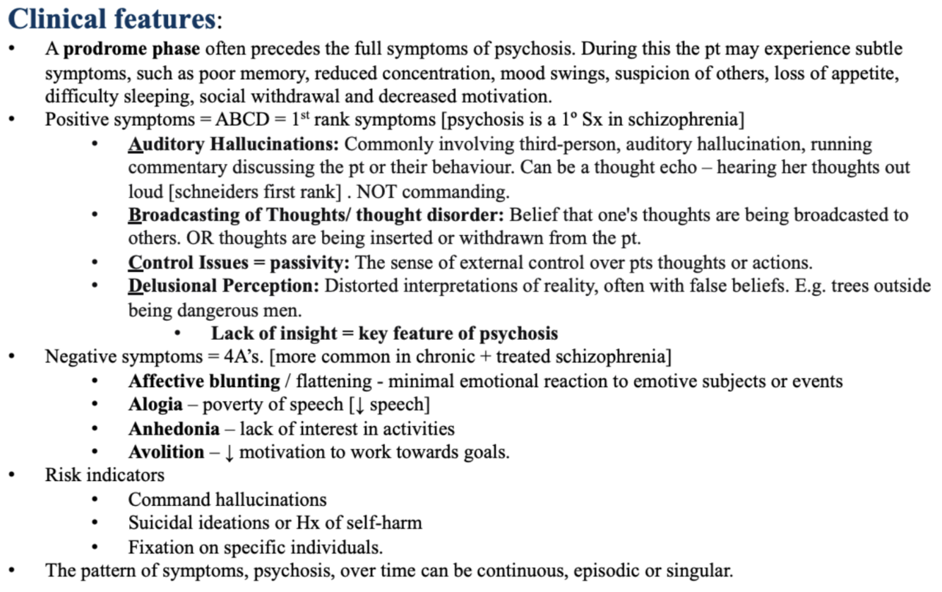 Positive symptoms: ABCD These reflect an excess or distortion of normal functions.