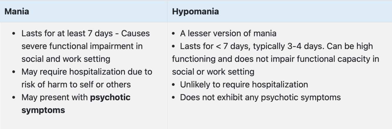 Differentiate using the length of symptoms, severity and presence of psychotic symptoms