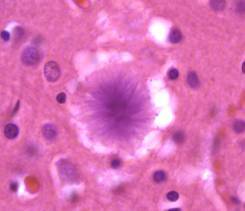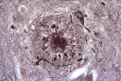 This is a plaque from the brain of a patient with Alzheimer’s disease.