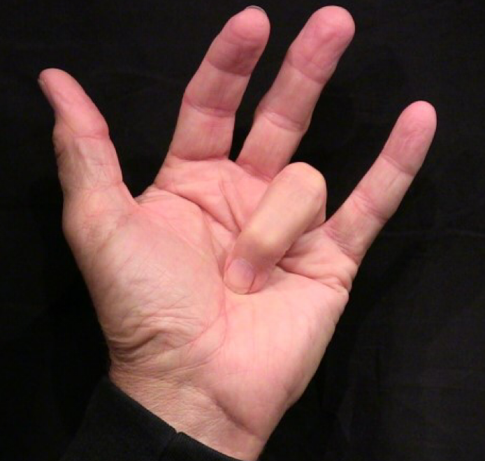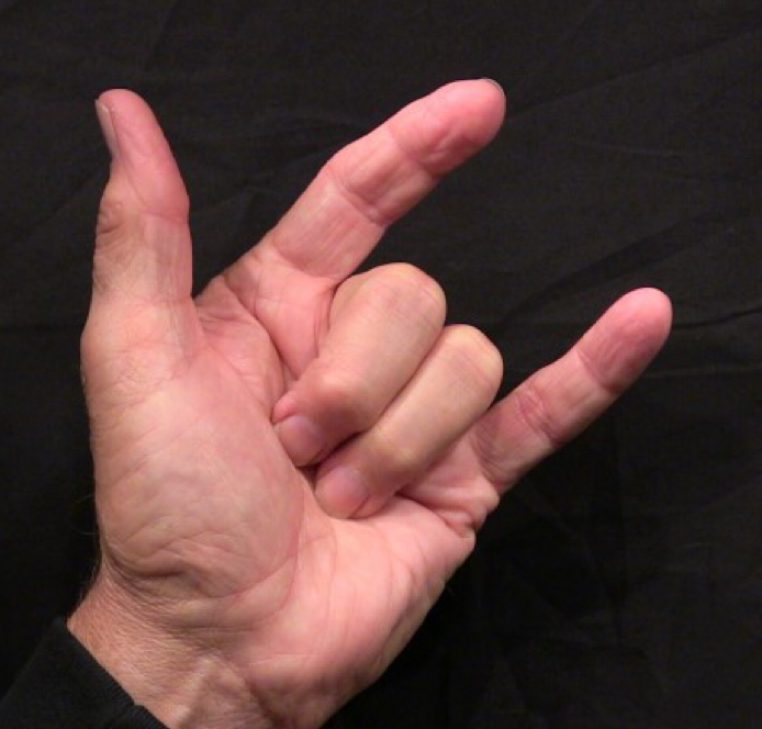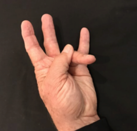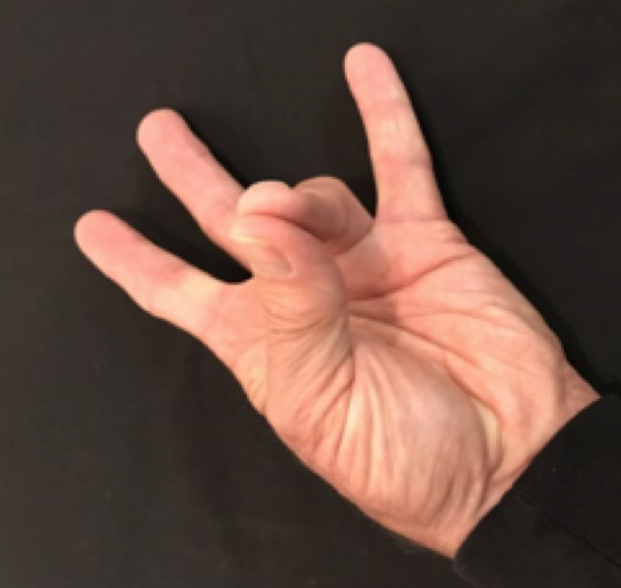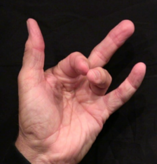 Position: Tip of ring finger into the center of palm.