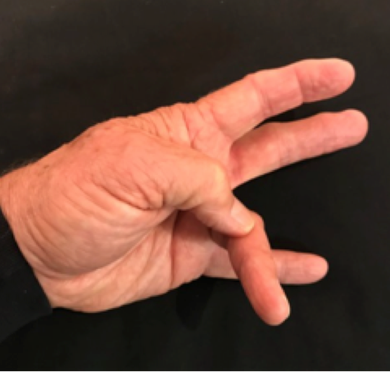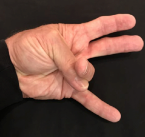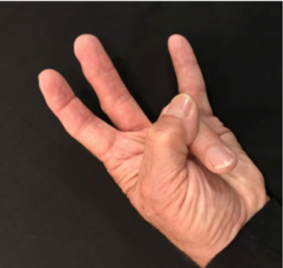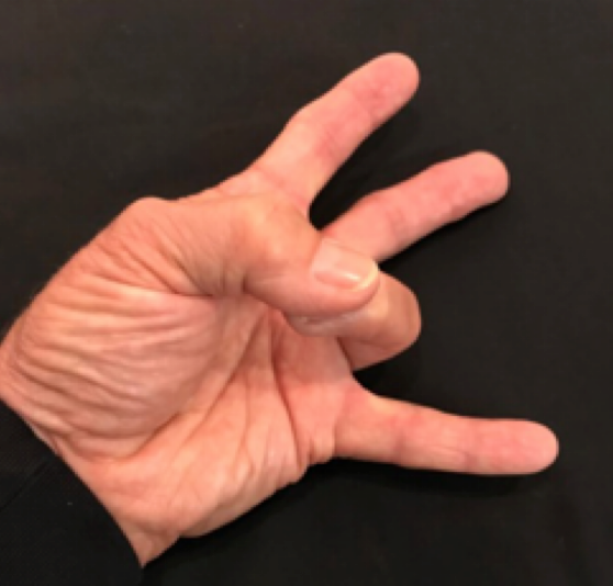 Position: Ulnar corner of thumb nail tip into the ulnar side of the ring finger PIP.