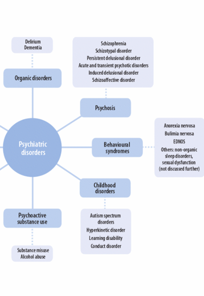 Branch of medicine that deals with the diagnosis, treatment and prevention of mental, emotional and behavioural disorders.