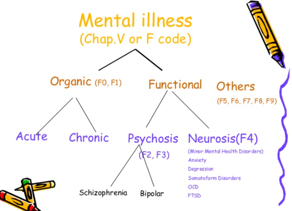 Describe how we can broadly classify psychiatric disorders