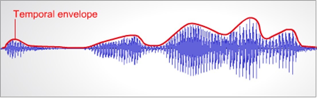 The temporal envelope of speech results from speech on and off, in addition to the amplitude changes of pronunciation of vowels, constants