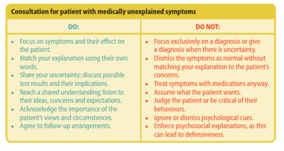 Discuss the management of medically unexplained symptoms (including somatoform & dissociative disorders); structure as biopsychosocial