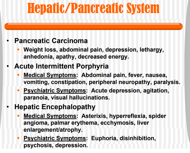 DWhich psych sx’s are very common with pancreatic carcinoma?