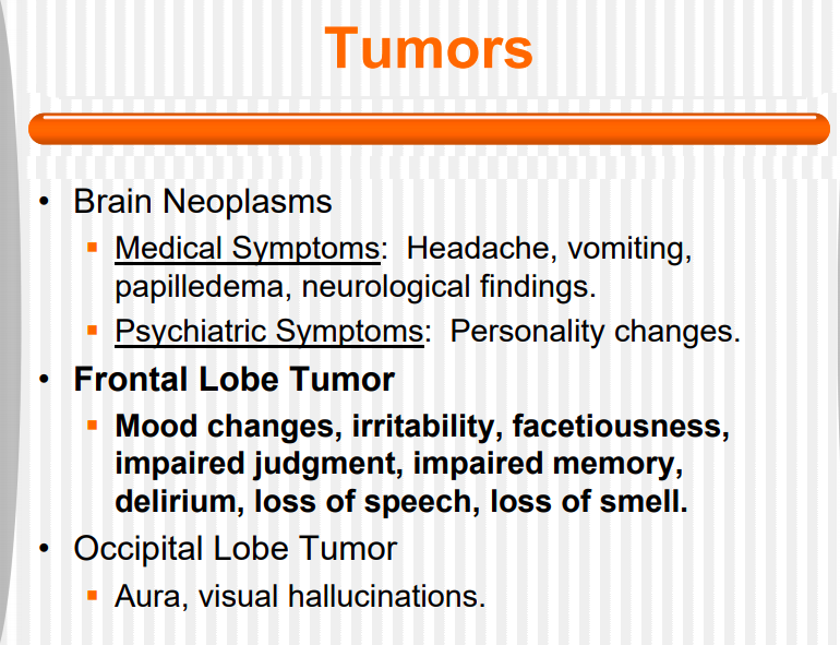 What are some of the psych sx’s associated with frontal lobe tumors?