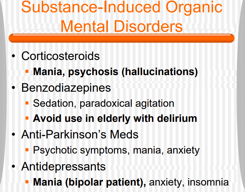 Euphoria, disinhibition, psychosis, anddepression