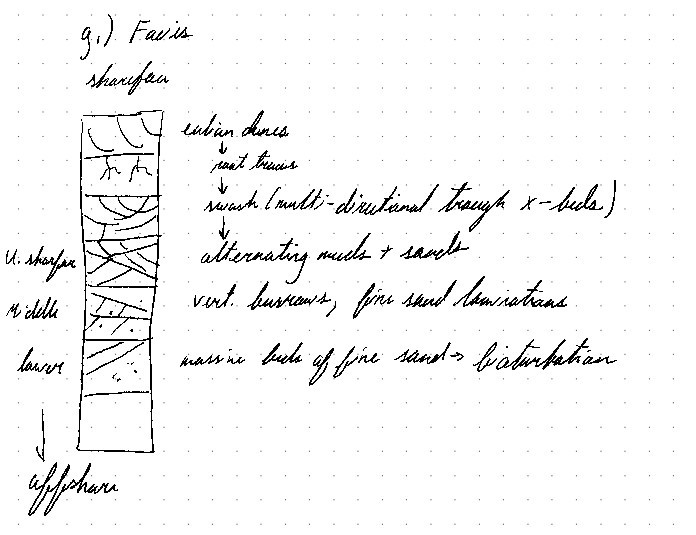 Barrier island facies from backshore to offshore