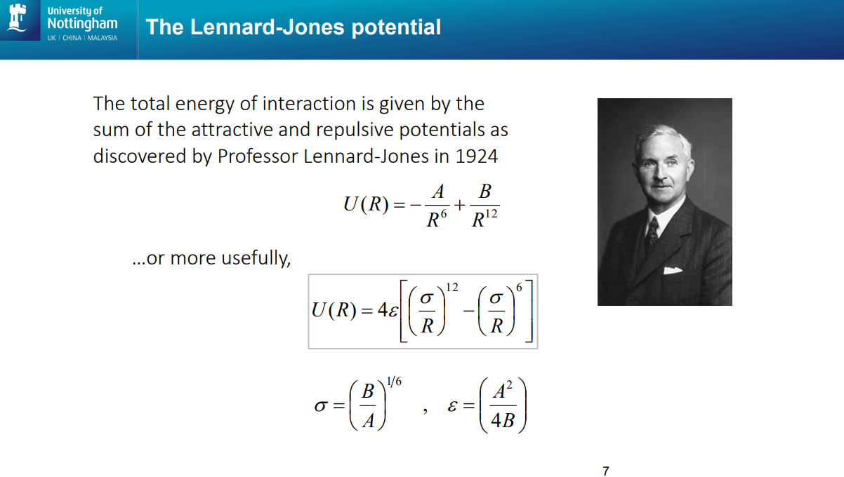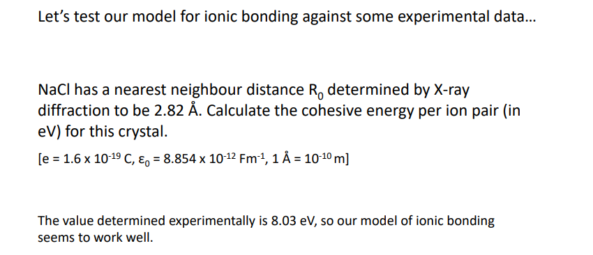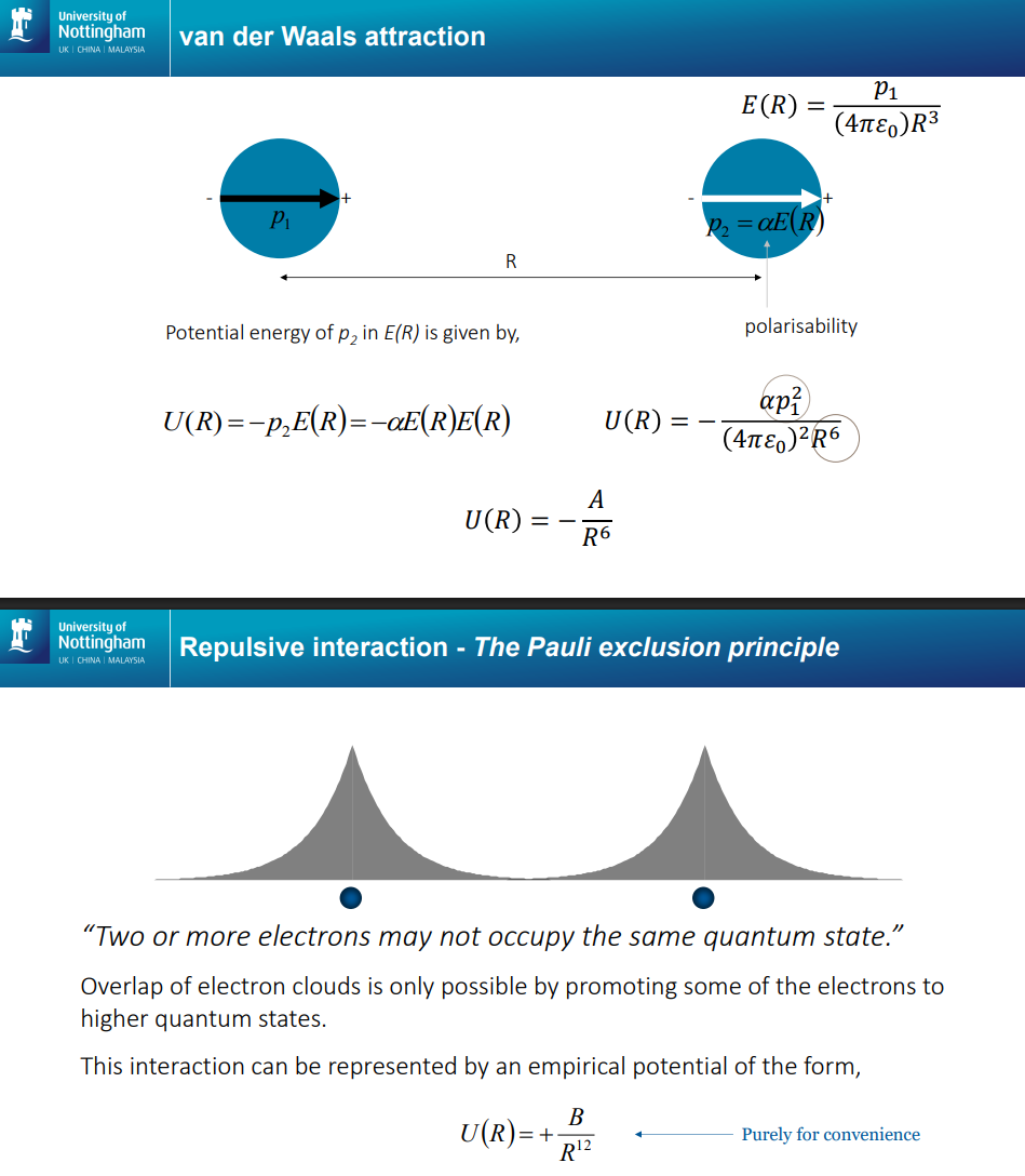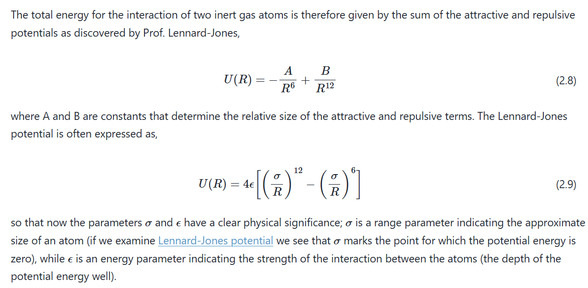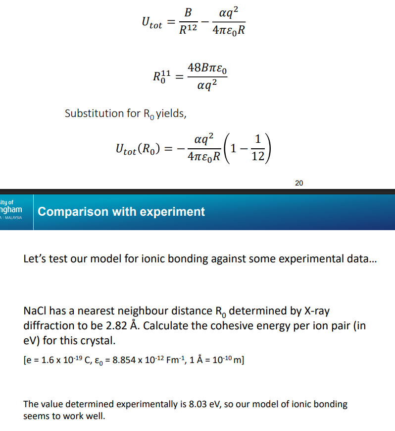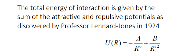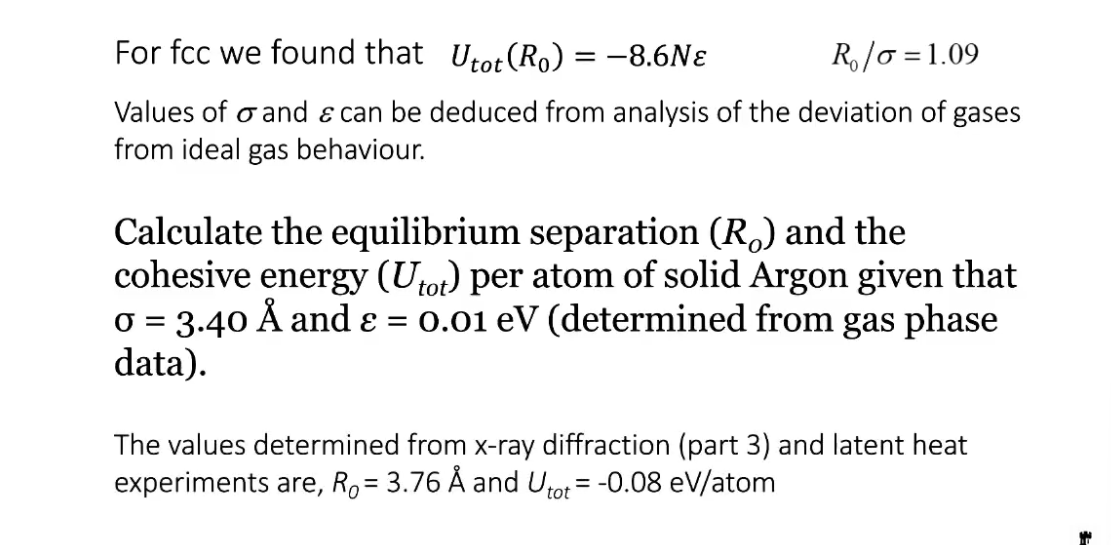 When going from 2 to multiple (a crystal of atoms)- The repulsive force each atom feels is a force from 12.13 atoms/nearest neighbours, and the attractice force is as though an atom is in an environment of effectively 14.45 neighbouring atoms.