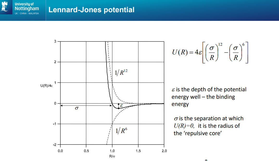 Sigma- The separation where U(R) = 0, it is the radius of the repulsive core. NOTE: WHERE U(R) = 0 is NOT the equilibrium point, i.e. not the position of minimum energy/not equilibrium position! DO NOT CONFUSE sigma with R0! You made this mistake before!
