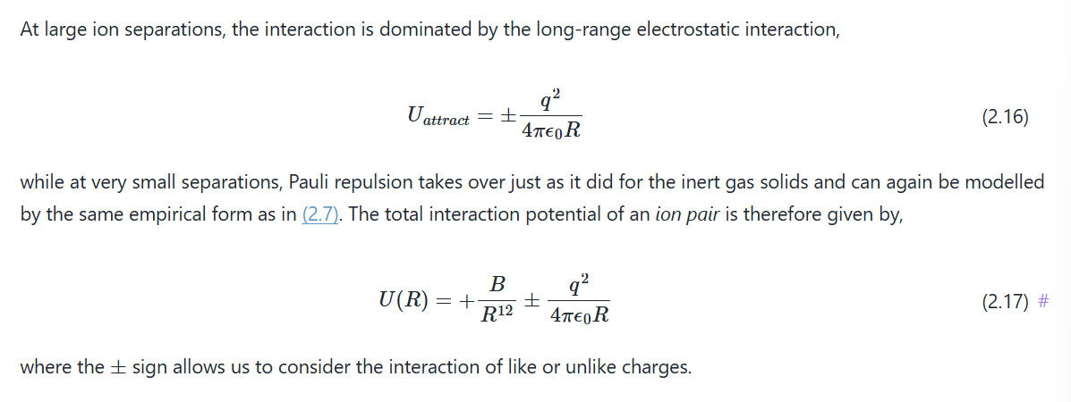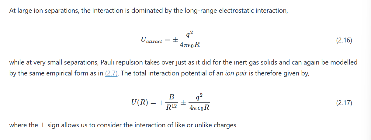 State the interaction potential of an IONIC STRUCTURE (not just pair- requires summation).