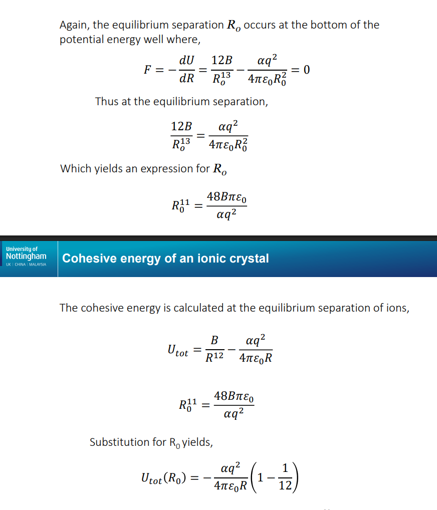 Hence find the cohesive energy of an ionic crystal in the ions equilibrium positions by substituting in the expression for R0.