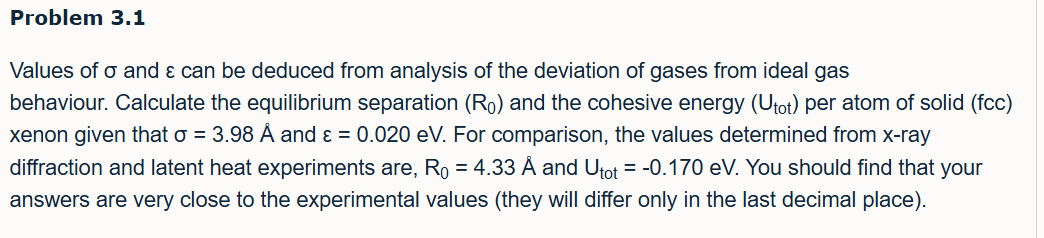 Hint: Minimum of Cohesive energy of van der Waal crystal/Lennard-Jones potential for a crystal.