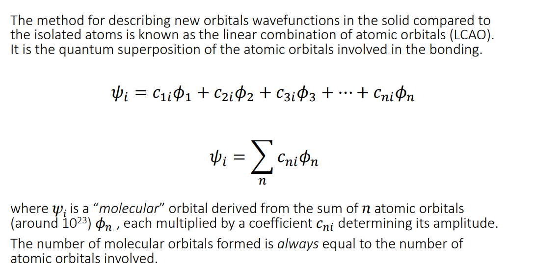 State the formula for the Linear combination of atomic orbitals (LCAO).