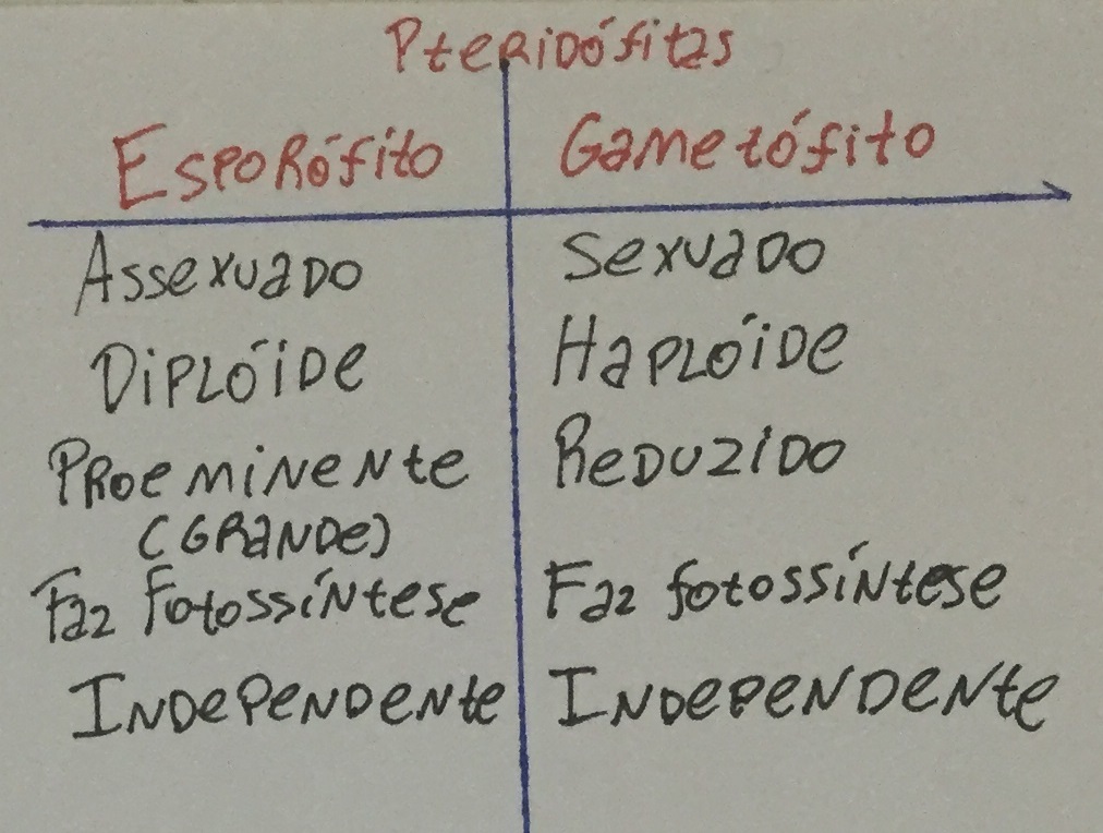 Quais são as diferenças entre o esporófito e o gametófito das pteridófitas?