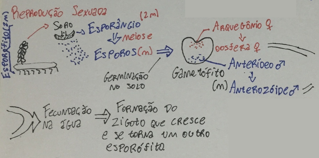 Como é feito a reprodução sexuada das pteridófitas?