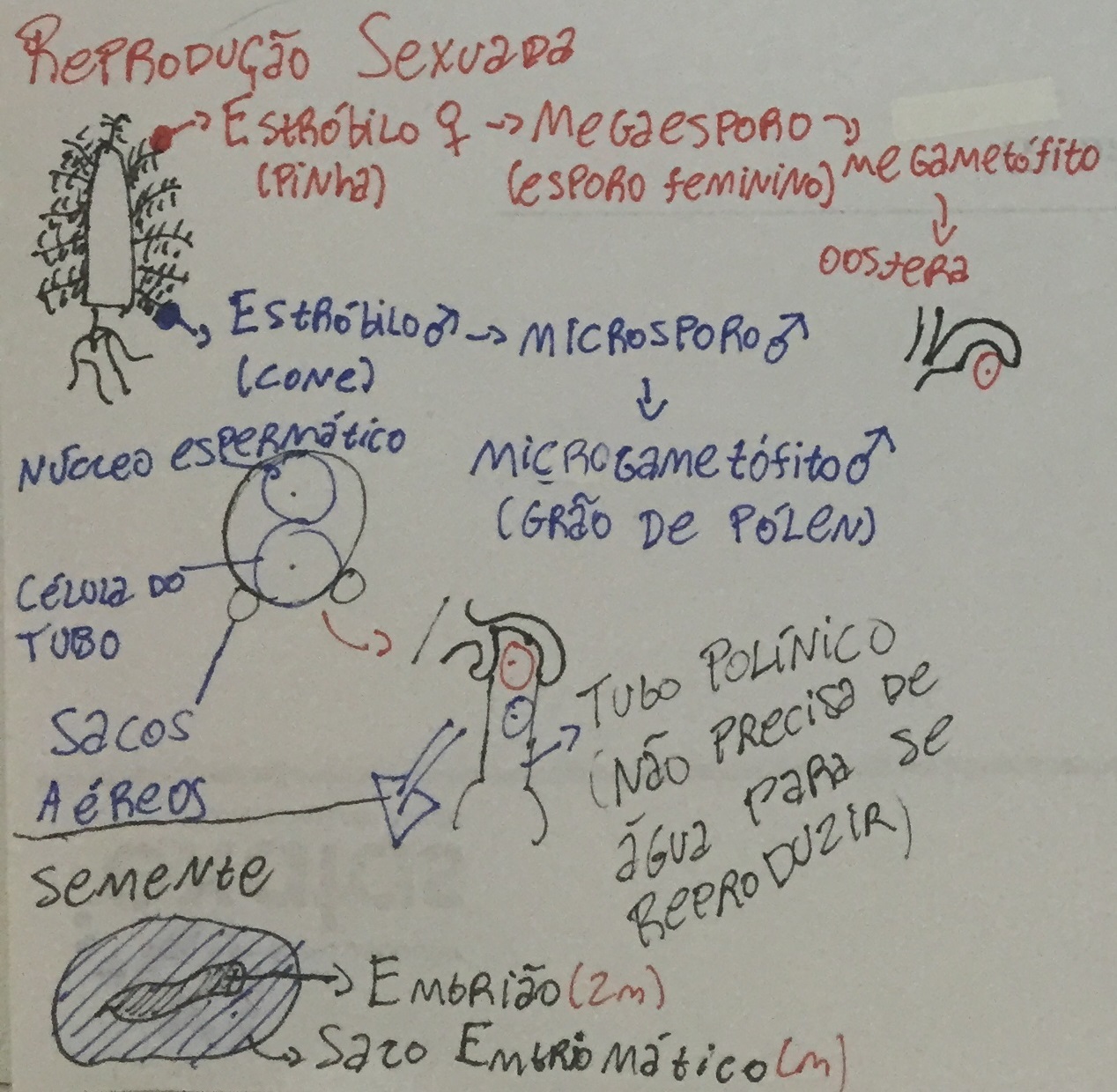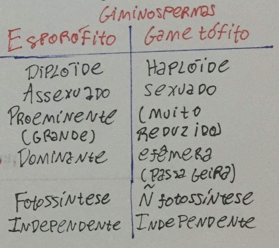 Quais são as diferenças entre o esporófito e o gametófito das giminospermas?