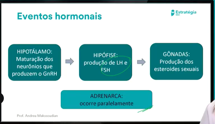 Quais são os tres eventos bem marcantes da puberdade feminina?