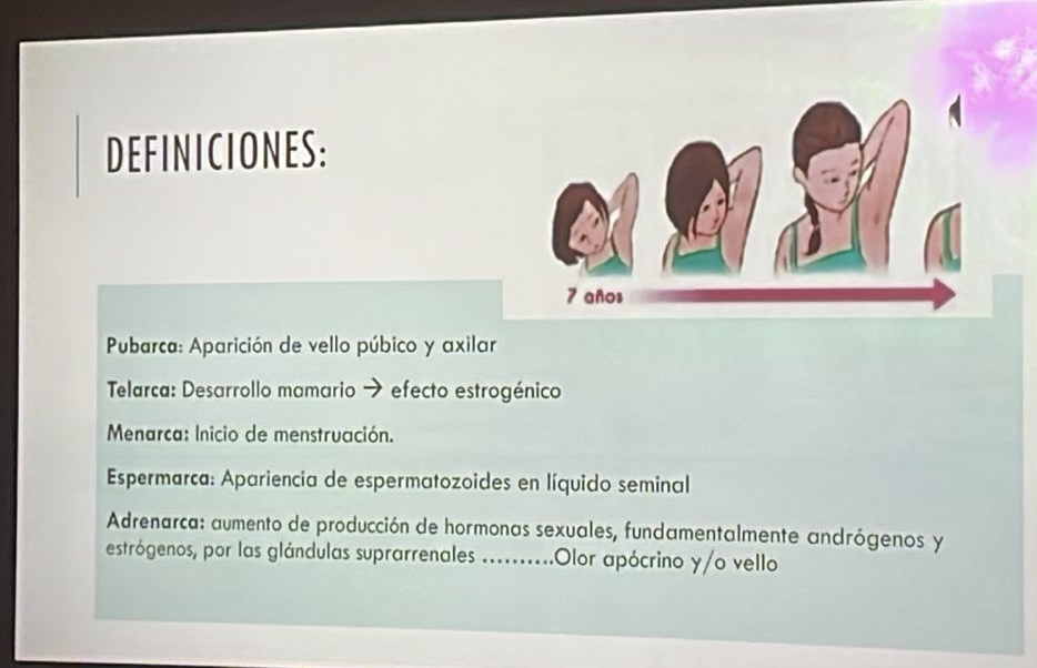 Definiciones: pubarca, telarca, menarca, espermarca, adrenarca