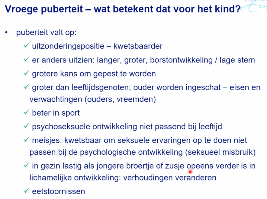 wat betekent vroege puberteit voor kind
