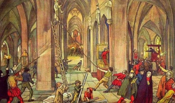 Met welke term wordt de vernietiging van katholieke kunst en heiligensculpturen in 1566 in de Nederlanden aangeduid?