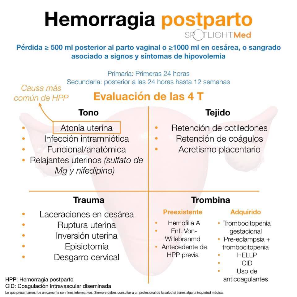 Causas comunes de hemorragia posparto además de atonía uterina