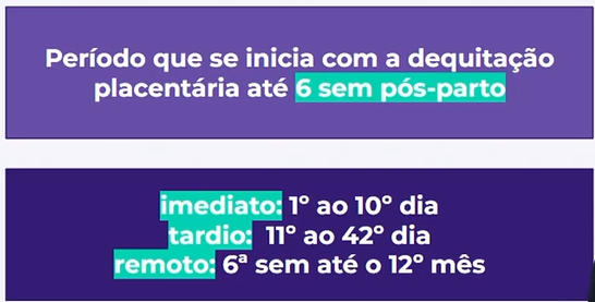 Coloração conforme progessão do puerpério